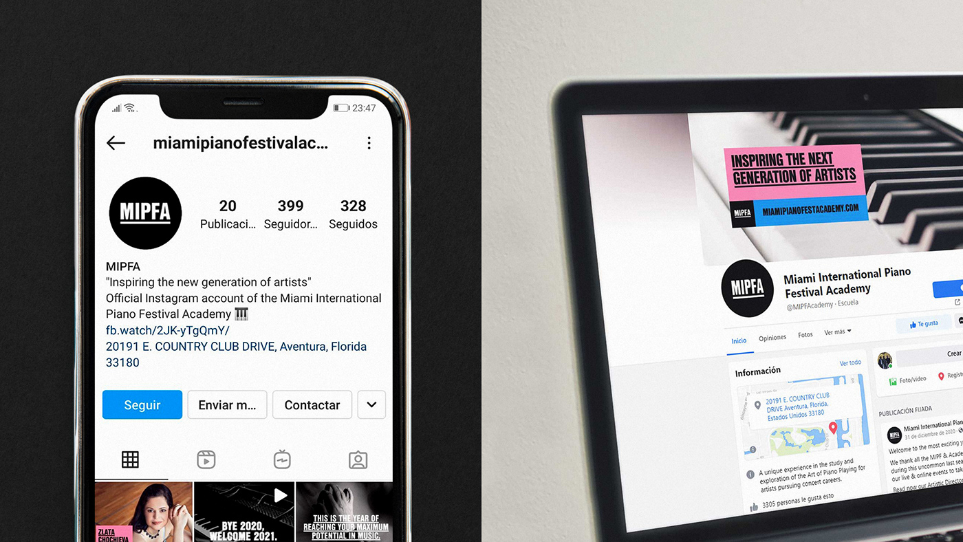 邁阿密國際鋼琴節(jié)學(xué)院,MIPFA決定創(chuàng)建一個在線平臺,提供世界上一些最好的鋼琴家的課程、現(xiàn)場課程和其他功能。學(xué)院需要一個新的身份來重新定位為一個當(dāng)代和數(shù)字化的機(jī)構(gòu),旨在激勵下一代鋼琴家大師。