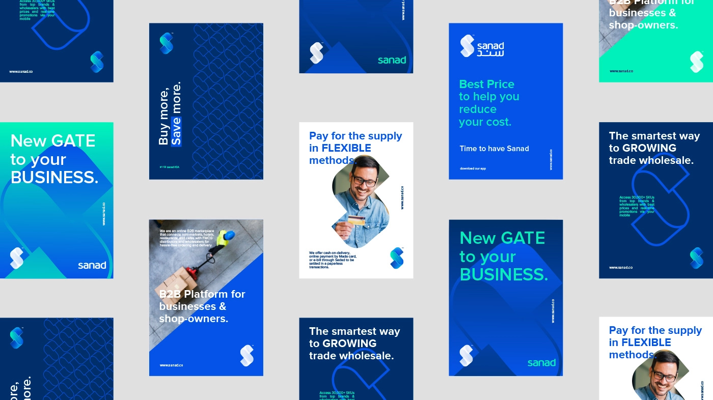 歐米布蘭德,該機(jī)構(gòu)為Sanad開發(fā)了一個富有創(chuàng)意和有意義的VI設(shè)計(jì)和徽標(biāo)概念,其中包含公司商業(yè)模式的關(guān)鍵元素。該標(biāo)志最突出的特征是字母S,它旨在代表連接企業(yè)與快速消費(fèi)品制造商和批發(fā)商的供應(yīng)鏈。同時(shí),S還暗示了沙特阿拉伯貨幣SAR,為設(shè)計(jì)增添了一絲當(dāng)?shù)靥厣?